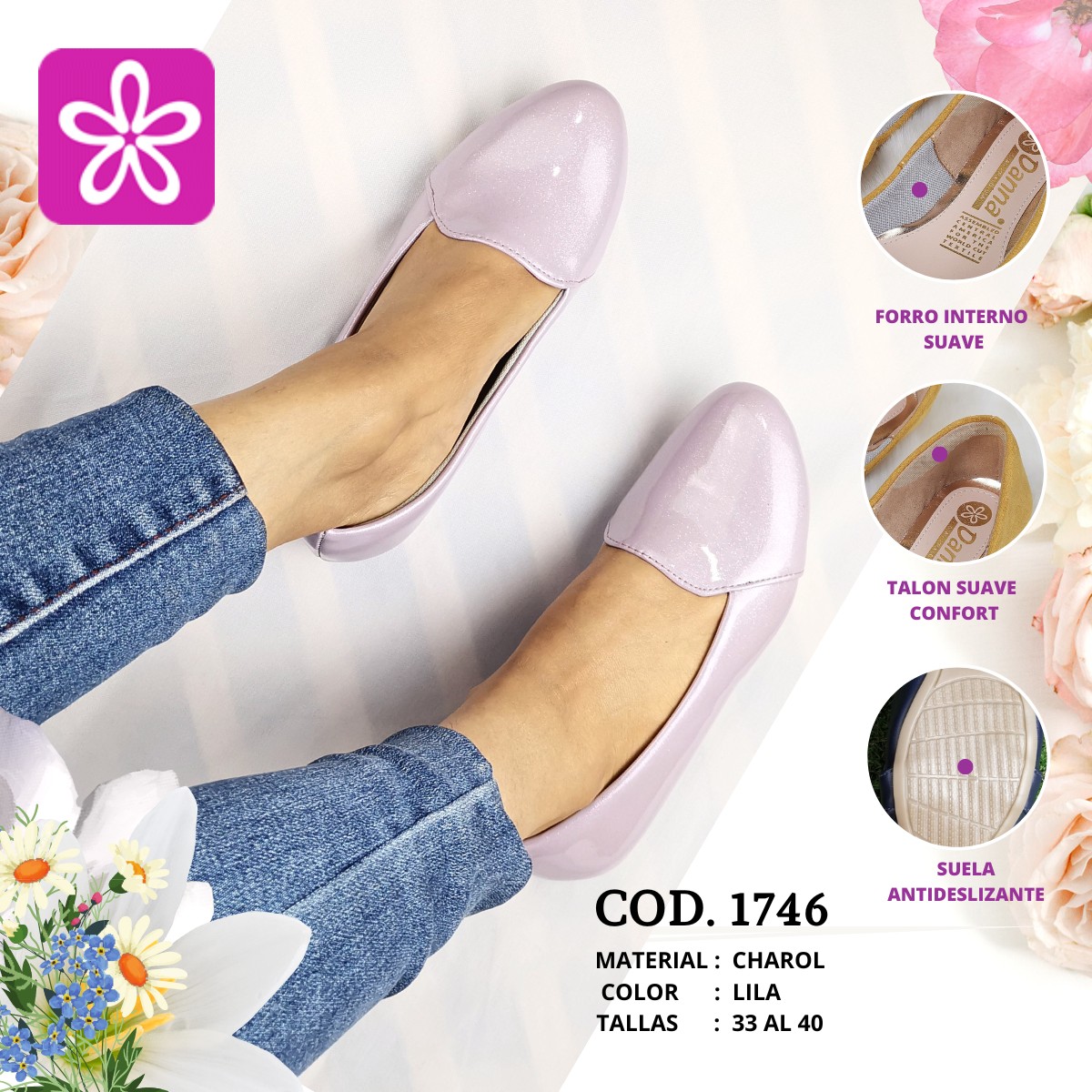 Flats Ivon Charol con brillitos Lila